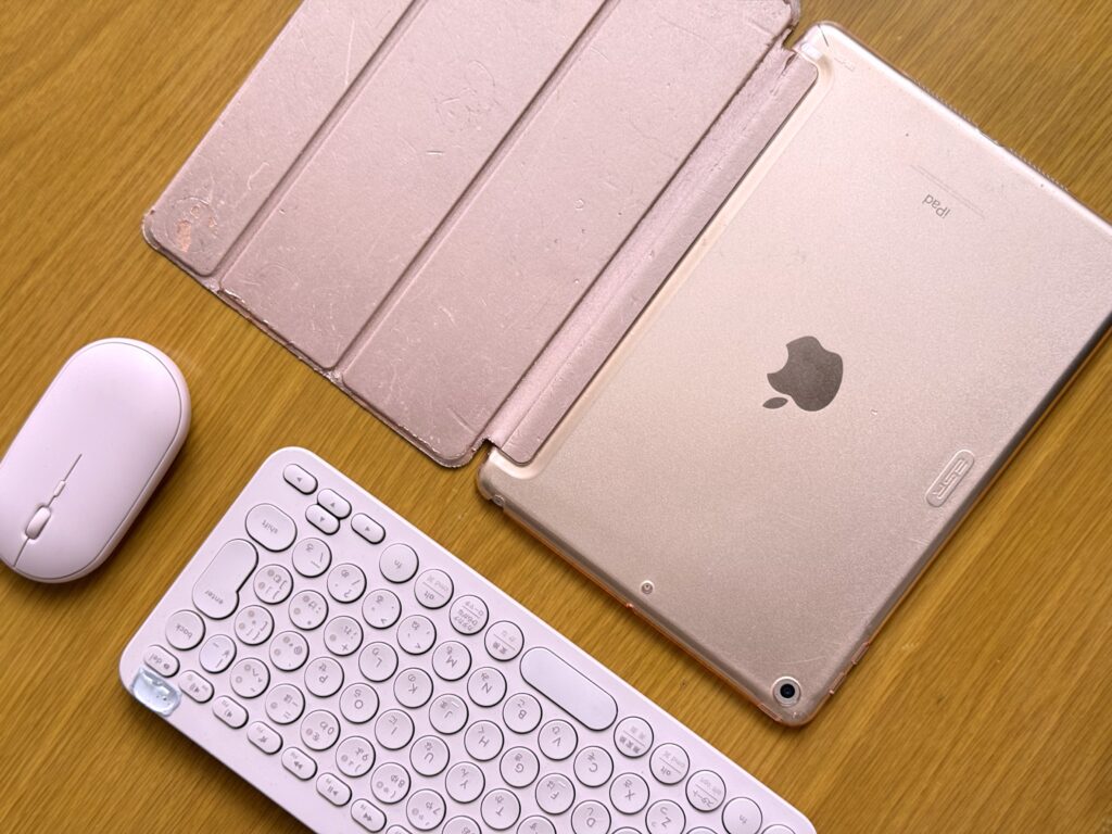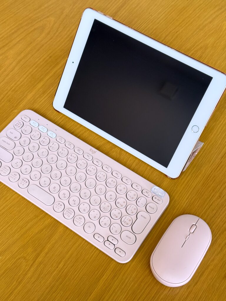代わりにiPad+iPadカバー+キーボード(ローズピンクでコーディネート)